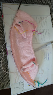 und dann hab ich zwischendurch immer mal wieder an der kleinen jacke für meine kleine bauchprinzessin, die im august zur welt kommen soll... gestrickt wird die jacke aus lana grossa basics merino plus, farbe 1, partie 10548 nach der anleitung cardigan aus dem buch "das mama-baby-strickbuch", seite 96 ff.
